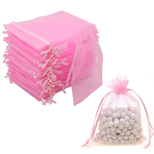 VOLLGUFEN 100 Pezzi 9 x 7cm Sacchetti Regalo Organza Gioielli Sacchetto, Borse Organza con Coulisse Sacchetti Bustina Organza per Nozze Regalo Caramella Partito Gioielli