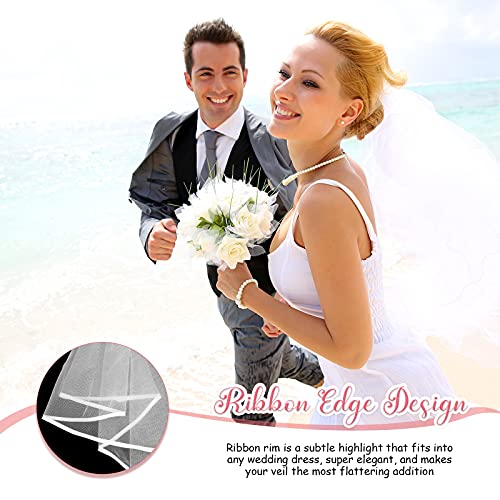 Allo stesso tempo, il design del bordo del nastro e il classico colore bianco aggiungono un tocco affascinante al velo da sposa