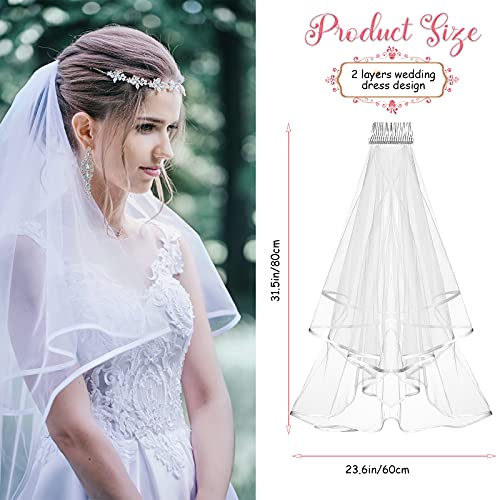 Design raffinato: il velo da sposa bianco è a doppio strato, il primo strato è di circa 23,6 pollici/ 60 cm e il secondo strato è di 31,5 pollici/ 80 cm, il che lo rende più stratificato ed elegante;