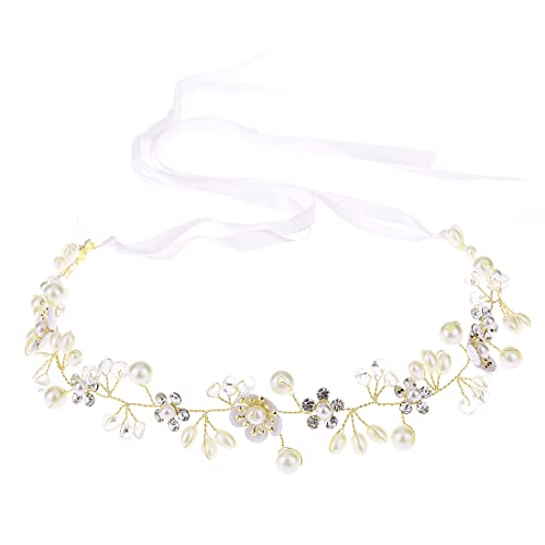 VOLLGUFEN Testa di strass di perle di fiori da 1 pezzo con accessori per capelli da sposa diadema da sposa per donne e ragazze