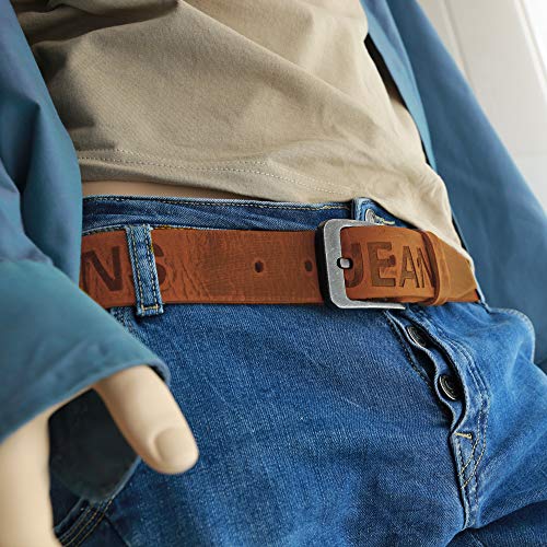 Fa.Volmer Cintura jeans, vera pelle, 100% pelle di bufalo, per uomo e donna, accorciabile, larghezza 3,8 cm, nuova, Jeans-38mm (Beige, GIROVITA 120cm - LUNG TOTALE 135cm)