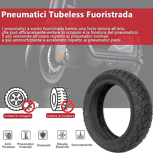 【ECCELLENTE RESISTENZA ALLO SCIVOLAMENTO】 I pneumatici sono progettati appositamente per gli scooter fuoristrada, con motivi più profondi e dimensioni del battistrada più ampie, i pneumatici hanno una presa e un potere di smorzamento più forti. Rendi l'esperienza di guida più confortevole.