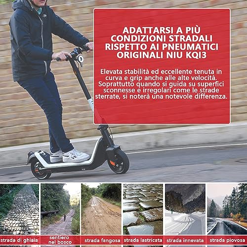 【DESIGN PROFESSIONALE】Pneumatici tubeless, appositamente progettati per sostituire le ruote anteriori o posteriori originali Niu KQI3/kqi 3 pro. Aumenta l'adattabilità degli scooter elettrici, consentendo agli scooter elettrici di portarti in più posti.