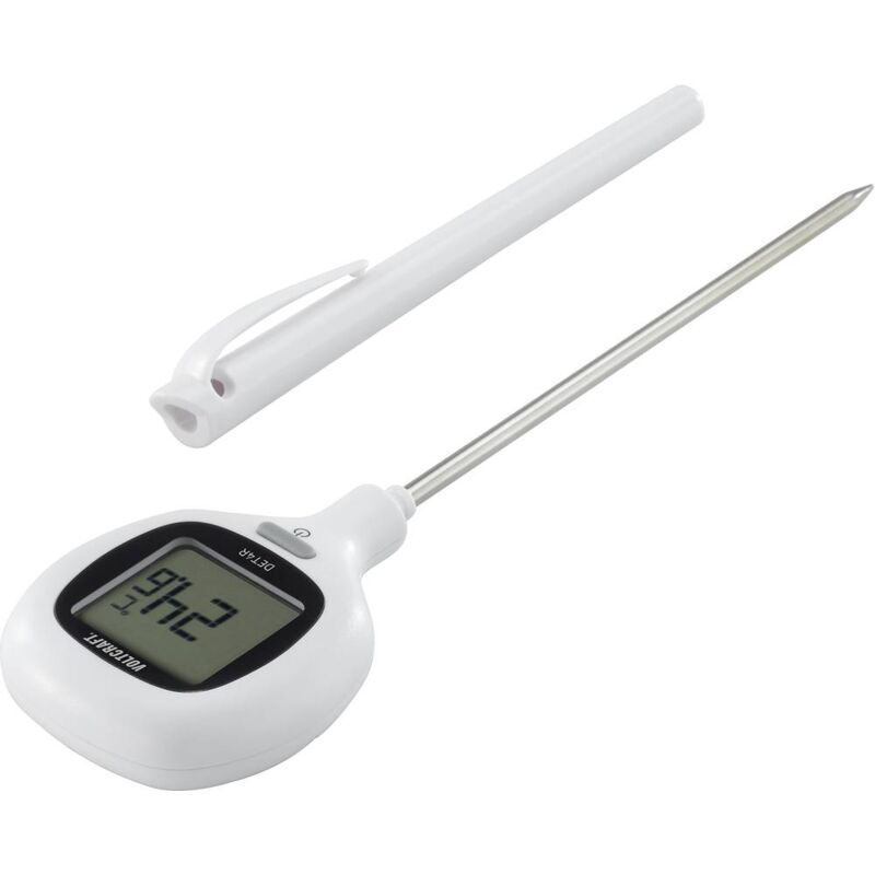 Dettagli tecnici Calibrato di fabbrica senza certificato Campo di misurazione temperatura (max.) 250 °C Dimensione del prodotto, larghezza 48 mm Dimensione del prodotto, lunghezza 185 mm Dimensioni (L x L x A) 185 x 48 x 18 mm Dimensioni prodotto Altezza 18 mm Peso 32 g Precisione (più / meno) 2 % Precisione di base (+/-) °C 2 °C Risoluzione (temperatura) 0.1 °C Sensore tipo NTC Termometro caratteristiche Misurazione a contatto Tipo prodotto Termometro a penetrazione VOLTCRAFT DET4R TERMOMETRO A PENETRAZIONE Grazie al vasto intervallo di misura della temperatura risultano innumerevoli settori di impiego in ambito domestico e nella gastronomia. Punti di forza e dettagli Intervallo di misura -20 bis +250 °C Risoluzione: 0,1 °C / °F Resistente all'acqua secondo IP66 Possibilità di ricalibrazione da parte dell'utente Ampio display LCD Caratteristiche Formato display LCD: 25 x 25 mm min. / Max. / funzioni di memoria funzione di mantenimento automatico. Spegnimento per la protezione