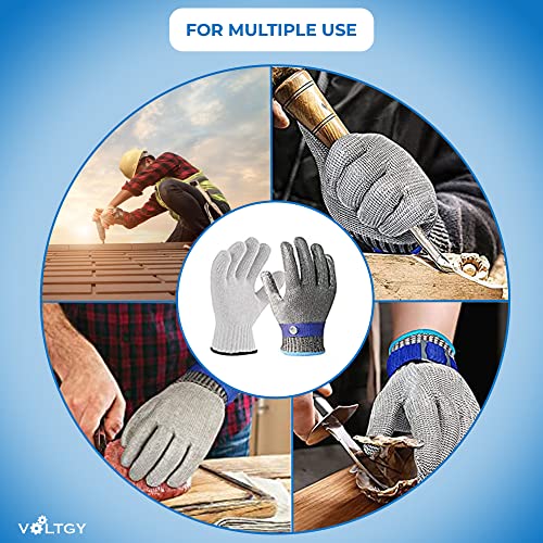 VOLTGY- Guanti da lavoro antitaglio livello 5 di macellaio protezione e sicurezza in rete in acciaio inox (S)