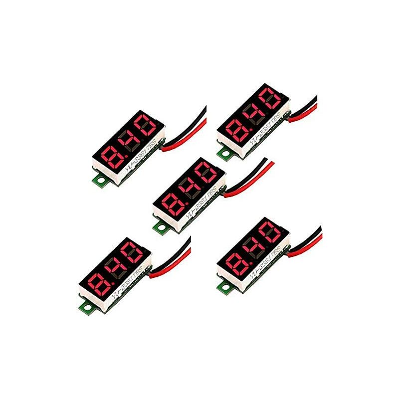 Specifiche: mini tester di tensione 5 pezzi (rosso) Gamma di misurazione: DC 2. 4-30V Alta qualità: prestazioni stabili e alta precisione. Se la tensione è inferiore a 10 V, la risoluzione è 0,01 V. La risoluzione della tensione superiore a 10 V è 0,1 V. Ciò garantisce sia precisione di misura che tensioni più elevate. Comodo e facile da montare: di piccole dimensioni e leggero. Protezione del collegamento inverso e voltmetro digitale a 2 fili, facile da installare e collegare.