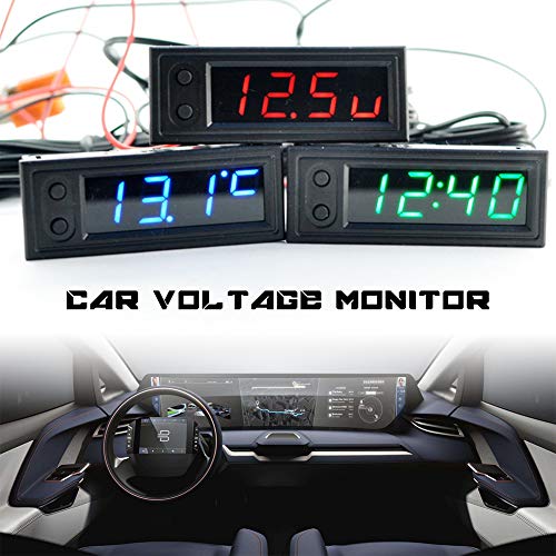 Voltmetro Orologio Termometro 3 in 1 12V Auto Digitale Impermeabile Antiurto CC 12V LED Display Digitale Voltometro LED per Motociclo Auto