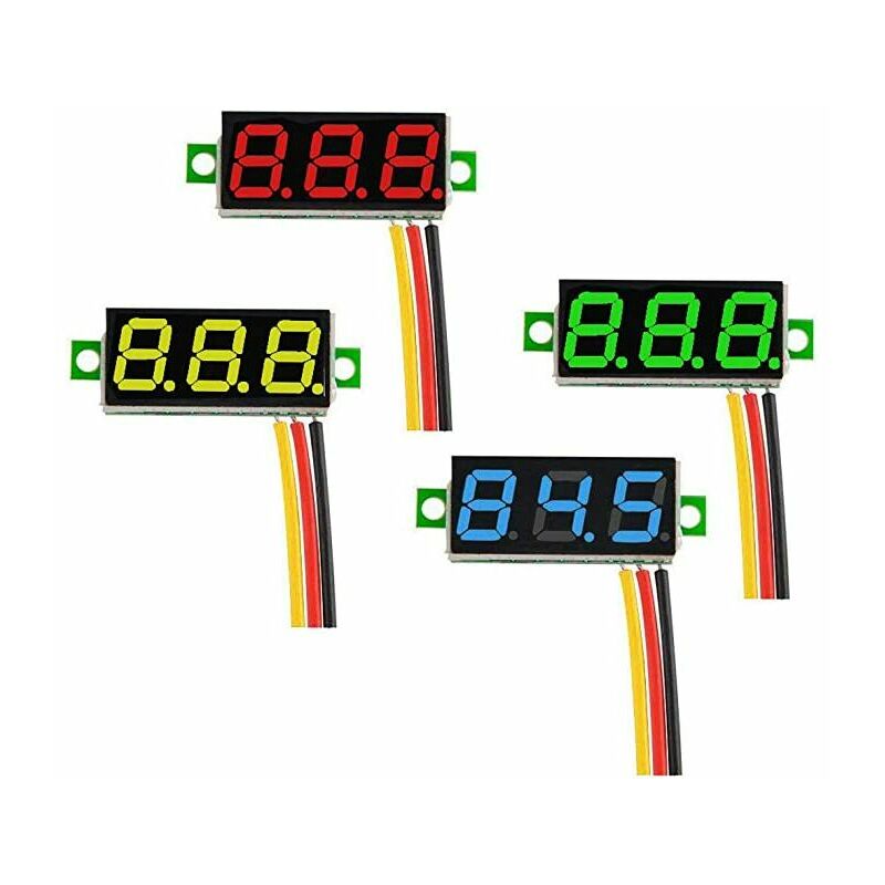4 colori: rosso, giallo, verde, blu. Con la protezione da inversione di polarità, il filo non verrà bruciato quando la connessione viene invertita. In grado di regolare la resistenza di tensione, girare in senso orario per ridurre la tensione, può funzionare direttamente in 5v, 9v, 12v, 24v. Nota: il voltmetro a tre fili può essere utilizzato anche come voltmetro a due filo. Alta precisione, protezione da inversione di polarità. Il punto decimale viene spostato automaticamente. Ha un guscio di protezione anticollisione.