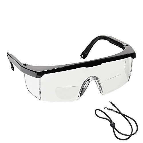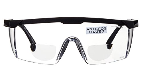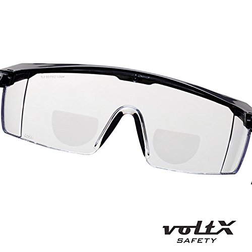 VoltX ‘CLASSIC' Occhiali di sicurezza da lettura BIFOCALI con certificazione CE EN166F (TRASPARENTI +3,0 diottrie) cordino di sicurezza incluso,con trattamento anti appannamento
