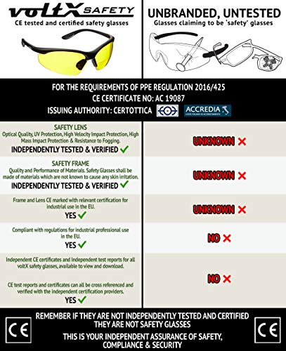 VoltX 'CONSTRUCTOR' Occhiali di sicurezza da lettura BIFOCALI (GIALLI +2,5 diottrie) con certificazione CE EN166F/Occhiali da ciclismo cordino di sicurezza incluso + astuccio rigido a forma di conchiglia