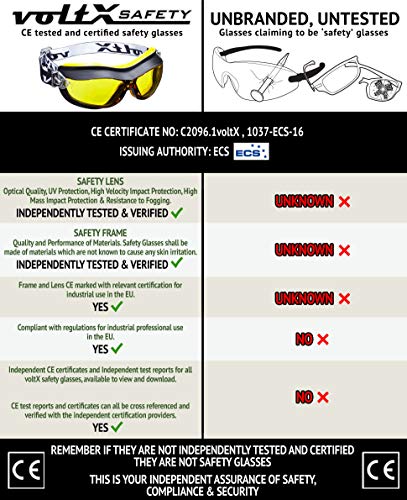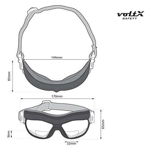 VoltX DEFENDER Compact BIFOCAL ventilata Occhiali di sicurezza (Giallo +3.0 lente), CE EN166FT certificato, Rivestimento anti-condensa. - Compact Bifocal Safety Goggles