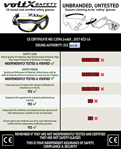 VoltX DEFENDER Compact BIFOCAL ventilata Occhiali di sicurezza (Trasparente +2.5 lente), CE EN166FT certificato, Rivestimento anti-condensa + astuccio rigido a forma di conchiglia. - Bifocal Goggles