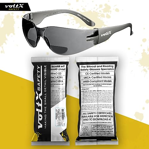 VoltX ‘GRAFTER' Bifocale Leggero Industriale Occhiali di sicurezza, Certificati CE EN166f / Occhiali per ciclisti (GRIGIO FUMO +1.5 diottrie) Safety Reading Glasses