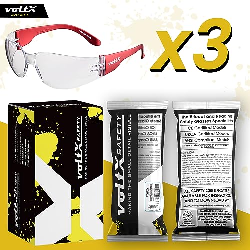 VoltX 3 x GRAFTER' Leggero Industriale Occhiali di sicurezza, Certificati CE EN166f / Occhiali per ciclisti (Lenti Trasparenti) - Safety Reading Glasses