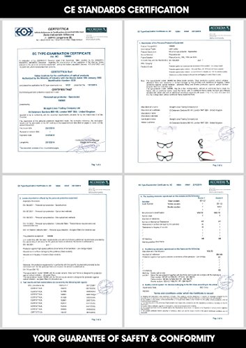 Dotati di certificazione CE EN166F e di montatura e lenti con marchio CE. Conformi alle normative UE per l'uso industriale in Europa.