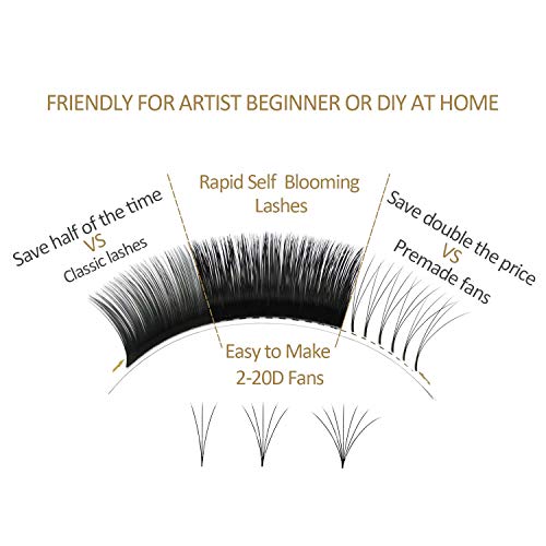 Volume Eyelash Extensions Auto Self Fanning 4D 5D 6D~10D Easy Fan Cluster Rapid Mega Volume Easy Fan Eye Lash Extension D Curl .05 12mm Mixed Tray 0.05 Lashes(0.05mm D 12mm)