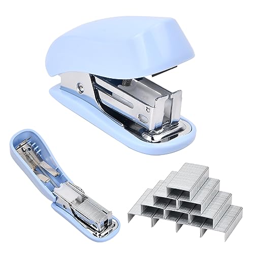 Volumoon Mini Pinzatrice Portatile, Cucitrice con scatola da 830 punti metallic, Piccola Cucitrice Fatta a Mano, Cucitrice da Scrivania,Cucitrice Manuale,Cancelleria Domestica e Ufficio (Blu)