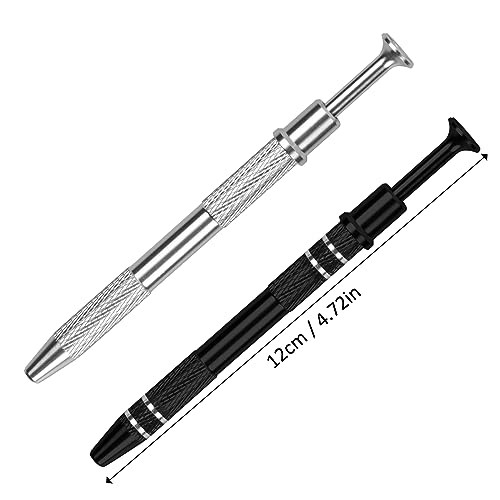 【Confezione da 2】 Grabber per piccole parti in argento e nero, con il nero che è un foro leggermente più grande. Entrambi sono adatti per afferrare parti di precisione, sfere perforanti, viti, pietre preziose, diamanti, ecc.