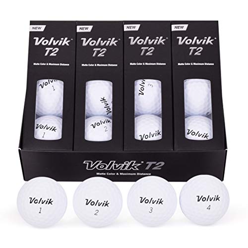 Volvik T2 - Palline a lunga distanza con finitura opaca, in polimero ionomero, 2 pezzi, 1 dozzina (bianco)