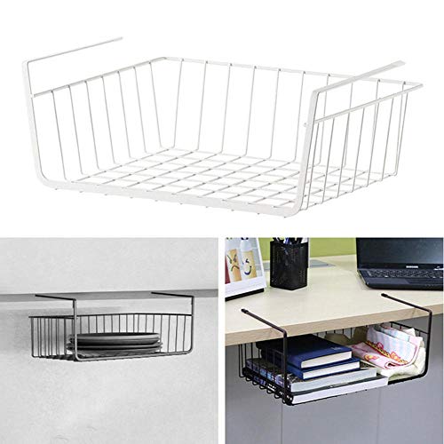 Volwco - Cesto portaoggetti sotto mensola, 2 pezzi, in rete metallica, da appendere, per cucina, dispensa, scrivania, libreria, armadietto, 40 x 26 x 13 cm