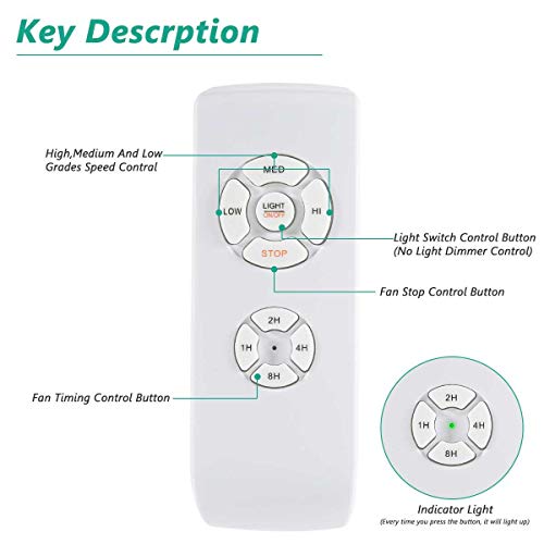 Multifunzione: include pulsanti separati per 3 velocità della ventola, progettati per controllare separatamente la velocità della ventola e la luce. Questo kit converte una ventola da soffitto regolare in un telecomando controllabile.