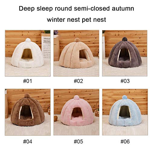 Volwco Tenda per animali domestici, letto a forma di zucca in pile a forma di coniglio, semi-chiuso, caldo e morbido, con cuscino rimovibile in cotone PP per un sonno profondo