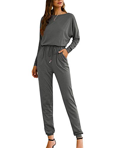 VONDA Donna Tuta Elegangte Invernale Manica Lunga Tinta Unita Spalle Scoperte Alta Pantaloni Autunno Salopette Conciso B-Grigio Scuro L