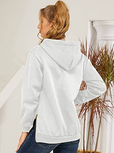 VONDA Felpa Donna con Cappuccio Invernale Lunga Oversize Tinta Unita Autunno Maglioni Pullover Comoda Sweatshirt con Zip A-Bianco M