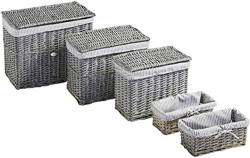 VonHaus - Set di cestini in vimini con, Tessuto, Grey, Set of 5 Trunks