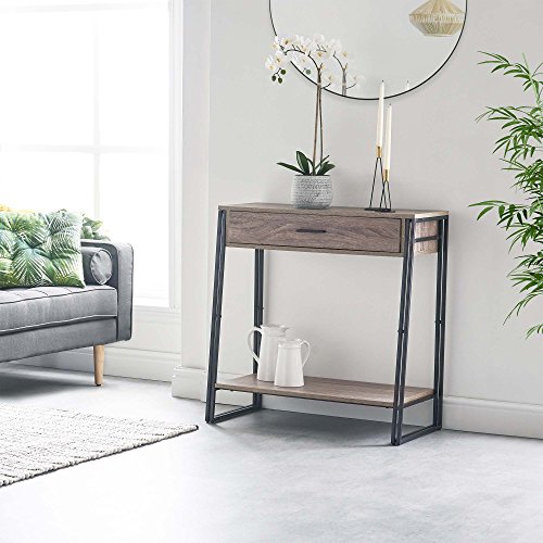 VonHaus Consolle con 1 cassetto e ripiano portaoggetti - Tavolino in legno di noce scuro - Salone, Salone, Corridoio e Ingresso con scaffalature - Aspetto industriale e rustico - Montaggio minimo