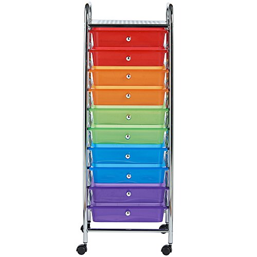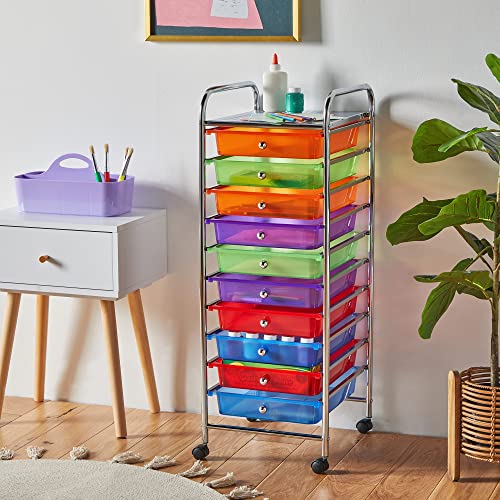 VonHaus, mobile su rotelle con 10 cassetti per casa, ufficio e salone di bellezza., plastica, Multi, 10 Drawer