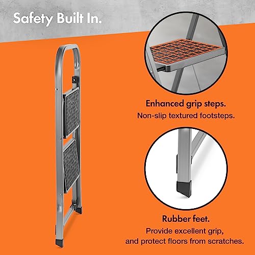 VonHaus Scala in Acciaio con 2 Scalini - Piedini Antiscivolo - Design Pieghevole Facile da Conservare - Ideale per Casa/Cucina/Garage