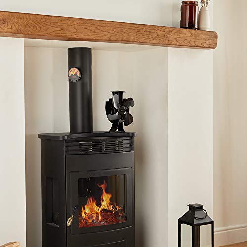 VonHaus Termoventilatore con 4 Lame Alimentato a Calore per Stufa/Bruciatore - Alluminio Nero