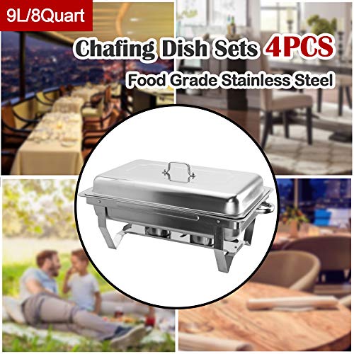 VONLUCE 9L Chafing Dish Set 4 Pezzi Scaldavivande in Acciaio Inox Contenitore Vassoio di Riscaldamento Pentole di Riscaldamento Chafing Dish per Buffet di Catering e Feste
