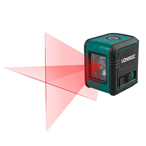 VONROC Laser a linee incrociate Autolivellante Raggio di 10 metri. Misuratore Orizzontale e Verticale. Include morsetto blocco, sacca portautensili e 2 batterie