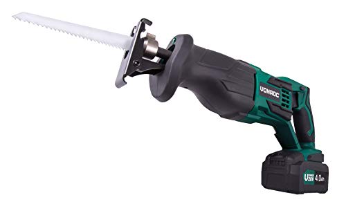 VONROC Seghetto a gattuccio a batteria VPOWER 20V. Set completo di 1 batteria 4.0Ah, caricatore rapido, 2 lame e sacca portautensili