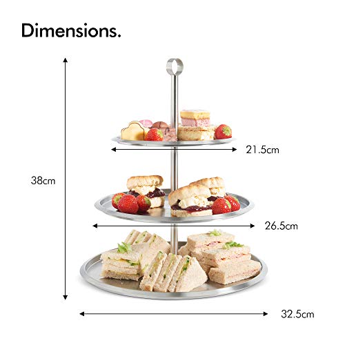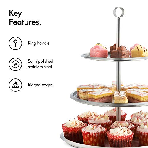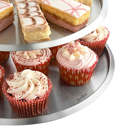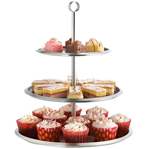 VonShef Alzatina in acciaio inox con 3 ripiani per torte/biscotti/muffin/matrimoni