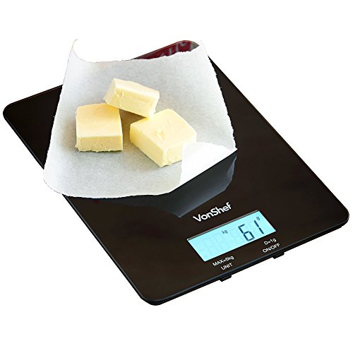 VonShef Bilancia digitale piatta in vetro da cucina, 5 kg - Nero