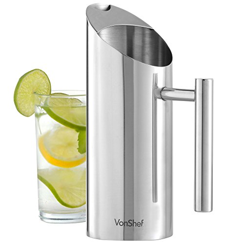 VonShef - Brocca in acciaio inox da 1 litro per acqua con coperchio
