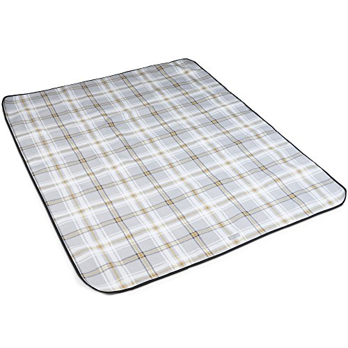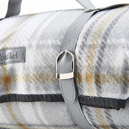 VonShef Coperta in Pile per Picnic Grigio a Quadri Extra Large con Manico in Ecopelle e Rivestimento Impermeabile - 147 X 180cm