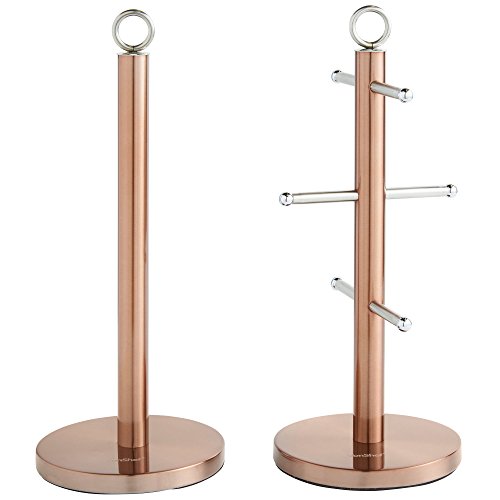 VonShef Set porta tazze e porta carta da cucina - Acciaio inox - Ramato