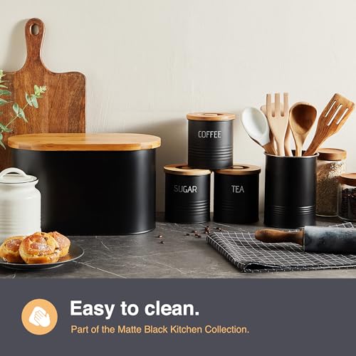 VonShef Porta Utensili Nero Opaco - Contenitore Cucina - Piano Lavoro Ordinato