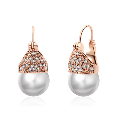 VONSSY Eleganti orecchini pendenti con perle in argento sterling 925, senza nichel, leggeri, comodi da indossare tutti i giorni, a cerchio in oro rosa con goccia di perle bianche