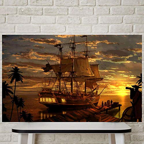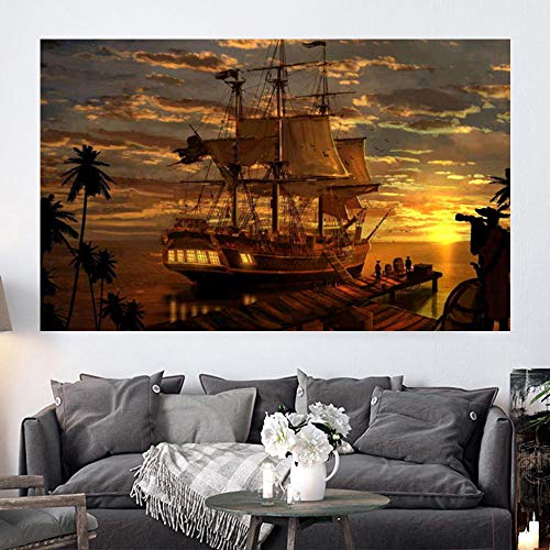 Voocuy Quadro Moderno su Tela Montato Nave Pirata Pirata Fantasy Wall Art Boa-60X90Cm_No_Frame