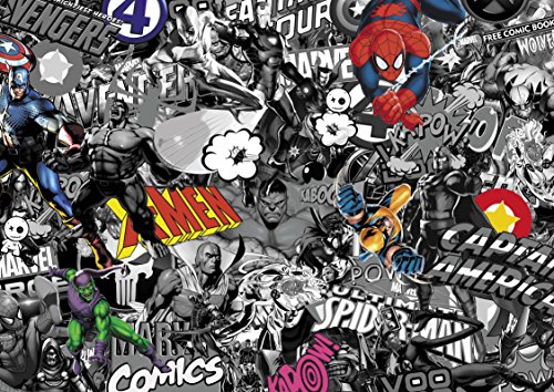Voodoo MARVEL Stickerbomb - Foglio adesivo in vinile con supereroi Marvel, 2 m x 600 mm, bianco e nero con colori
