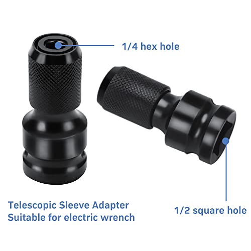 Ampia applicazione: l'adattatore per presa può essere ampiamente utilizzato per qualsiasi avvitatore pneumatico o elettrico da 1/2 pollice da trasformare nella punta del trapano e può fissare saldamente qualsiasi punta da trapano con gambo esagonale da 1/4 di pollice, come punta da trapano a inserto, punta per cacciavite, ecc.