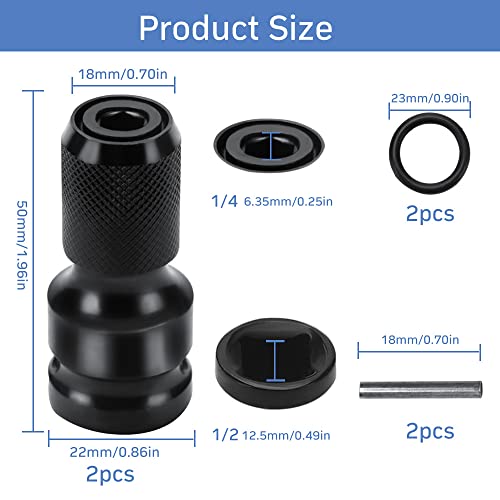 VooGenzek 2 Pezzi Nero Adattatori Quadrello da 1/2” a Esagonale da 1/4” Adattatore a Sgancio Rapido Adattatori, per Cacciaviti a Percussione Cricchetto