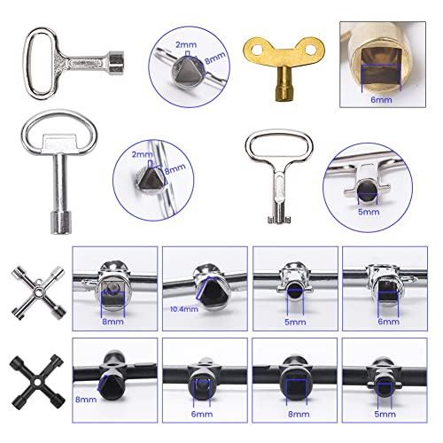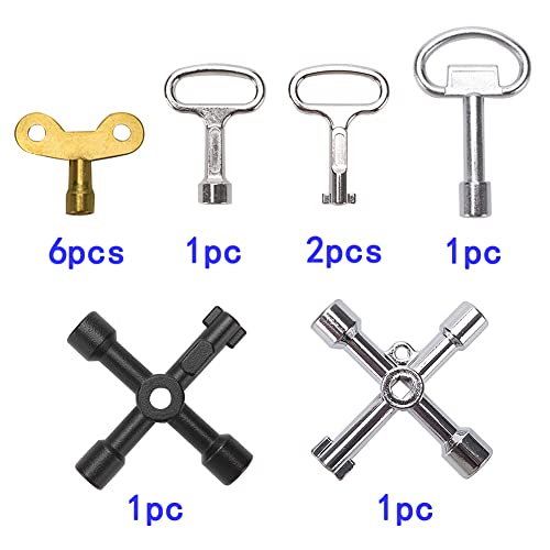 VooGenzek 12 Pezzi Chiave Inglese, Chiavi di Sfiato Termosifoni, Chiave Spurgo Radiatore, Chiave a Triangolo, Chiave a 4 Vie, per Contatori Elettrici, Contatori dell'acqua, Contatori Gas, Radiatori
