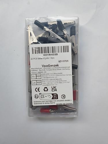 VooGenzek 20 Pezzi Morsetti a Coccodrillo, Coccodrillo Clip per Test in Metallo, per Test Elettrici di Laboratorio e Cavo Clip, con Batteria Clip di isolamento (Rosso Nero)