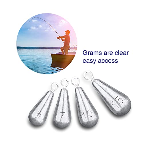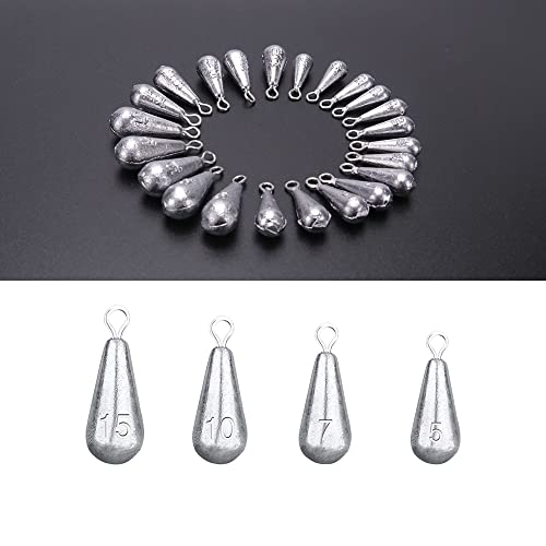 VooGenzek 23 Pezzi Pesi da Pesca a Goccia d'Acqua con Occhiello, Casting Piombo Peso Kit, Kit di Esche da Pesca, Piombo a pera Accessorio per Attrezzatura 5g/7g/10g/15g